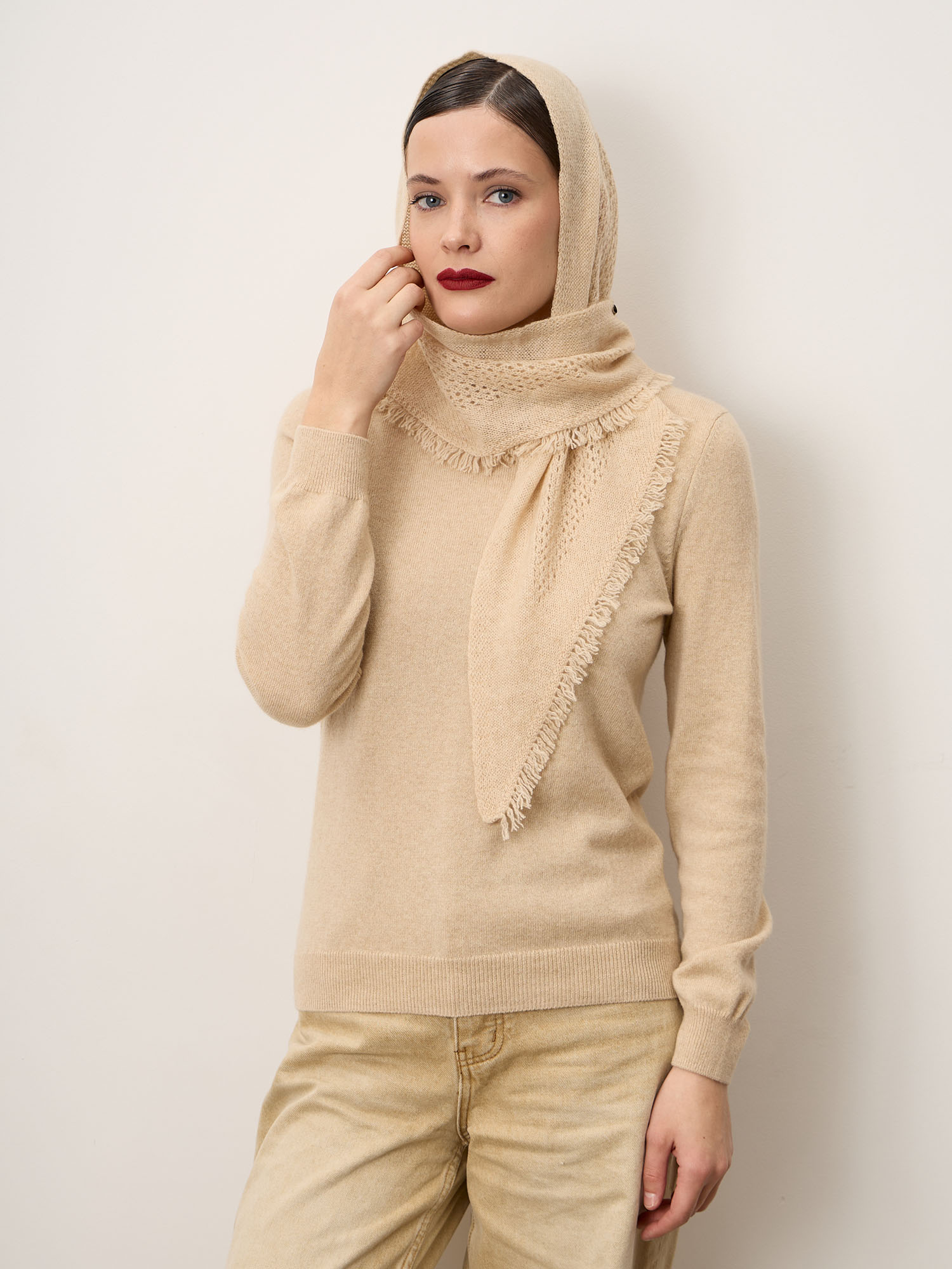Натуральный кашемир премиального качества — лёгкий, мягкий и тёплый. Волокно отличается высокой теплоизоляцией и воздухопроницаемостью, приятно к коже и обеспечивает комфорт даже при длительном ношении.