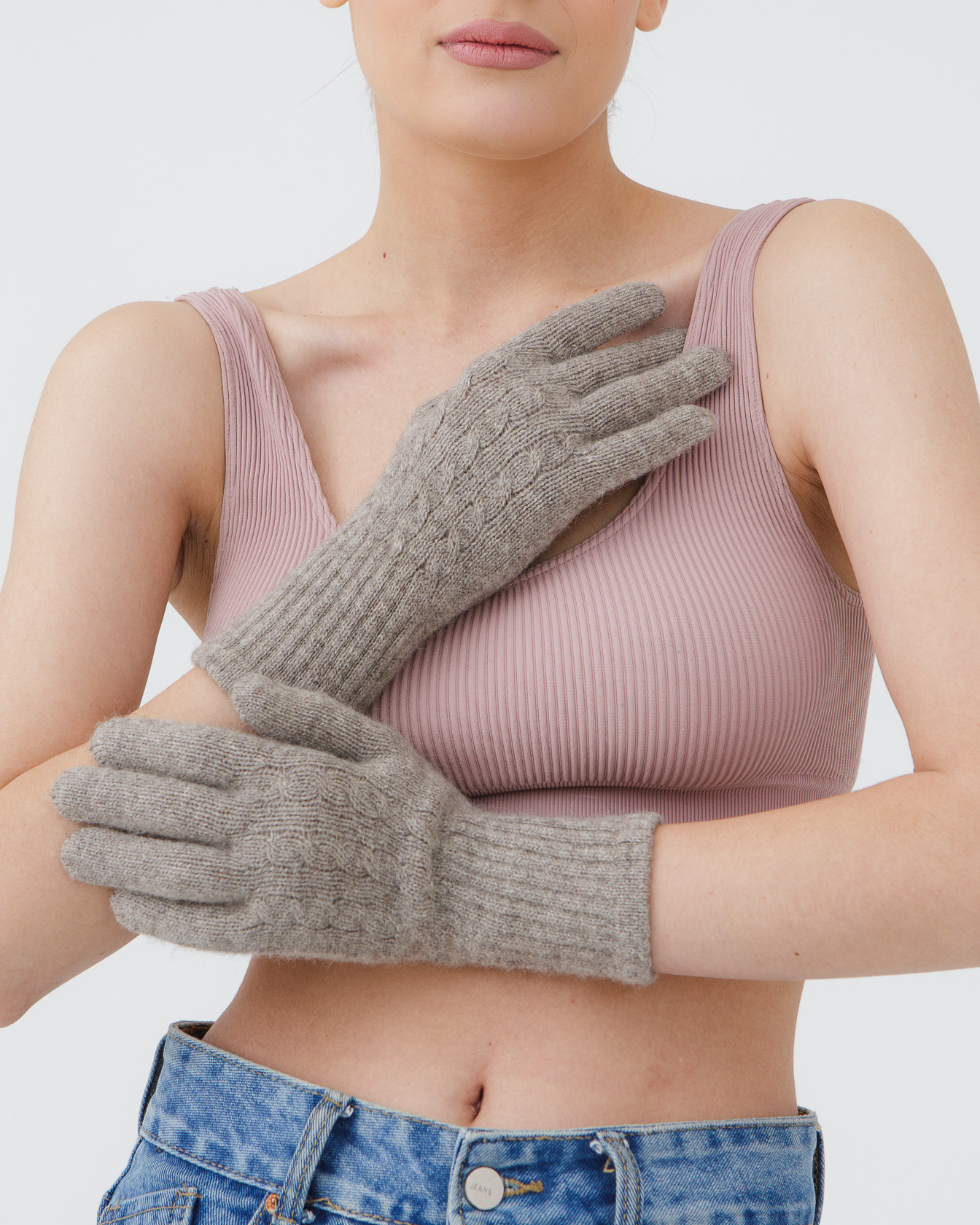 Модель выполнена с акцентом на классический узор «косы», который создаёт объёмную текстуру и добавляет изделию изысканности. Удлинённая манжета делает дизайн не только стильным, но и функциональным.