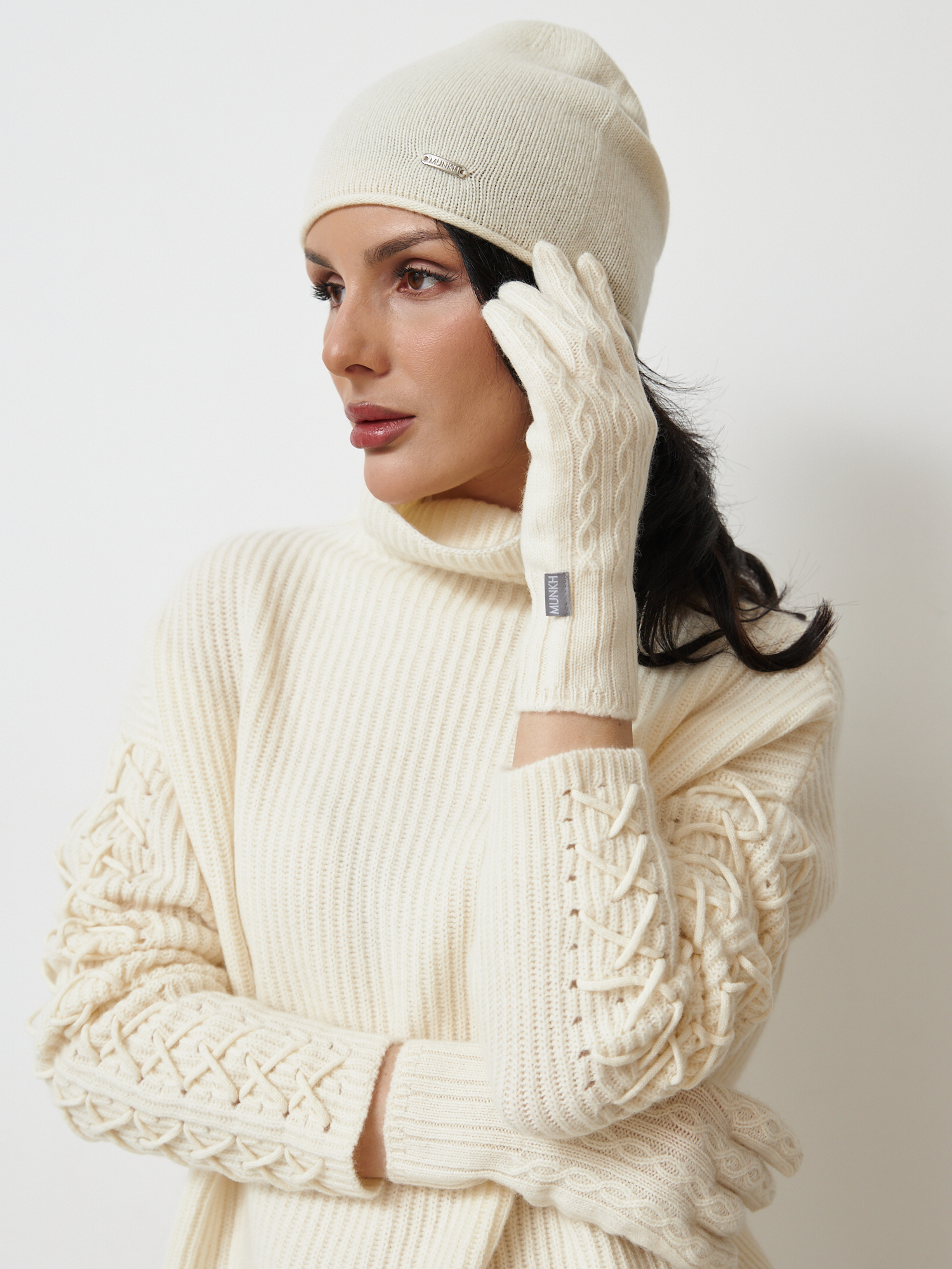 Перчатки из кашемира 31022 кремовые