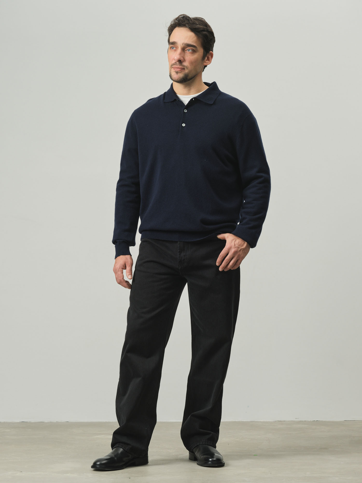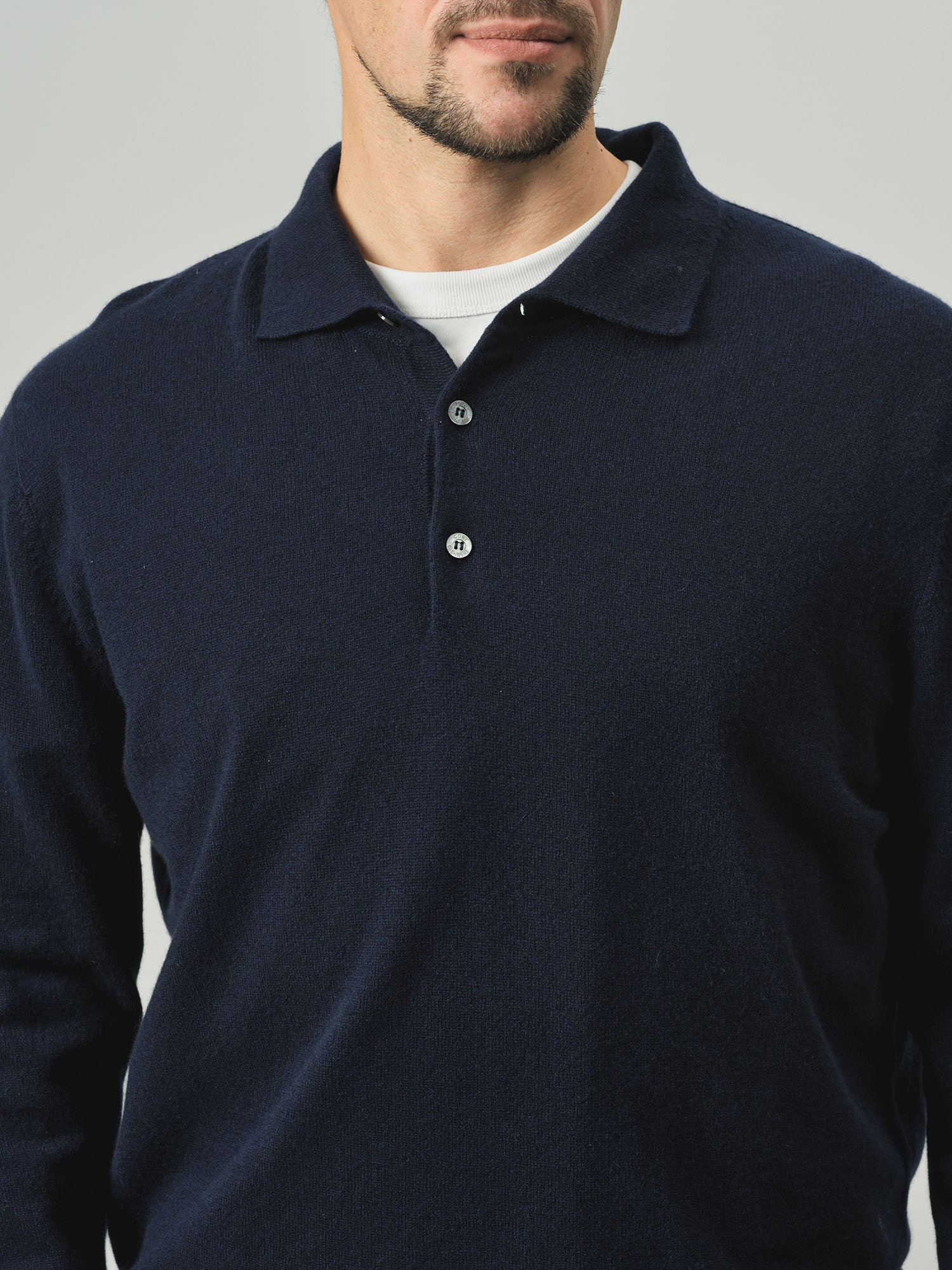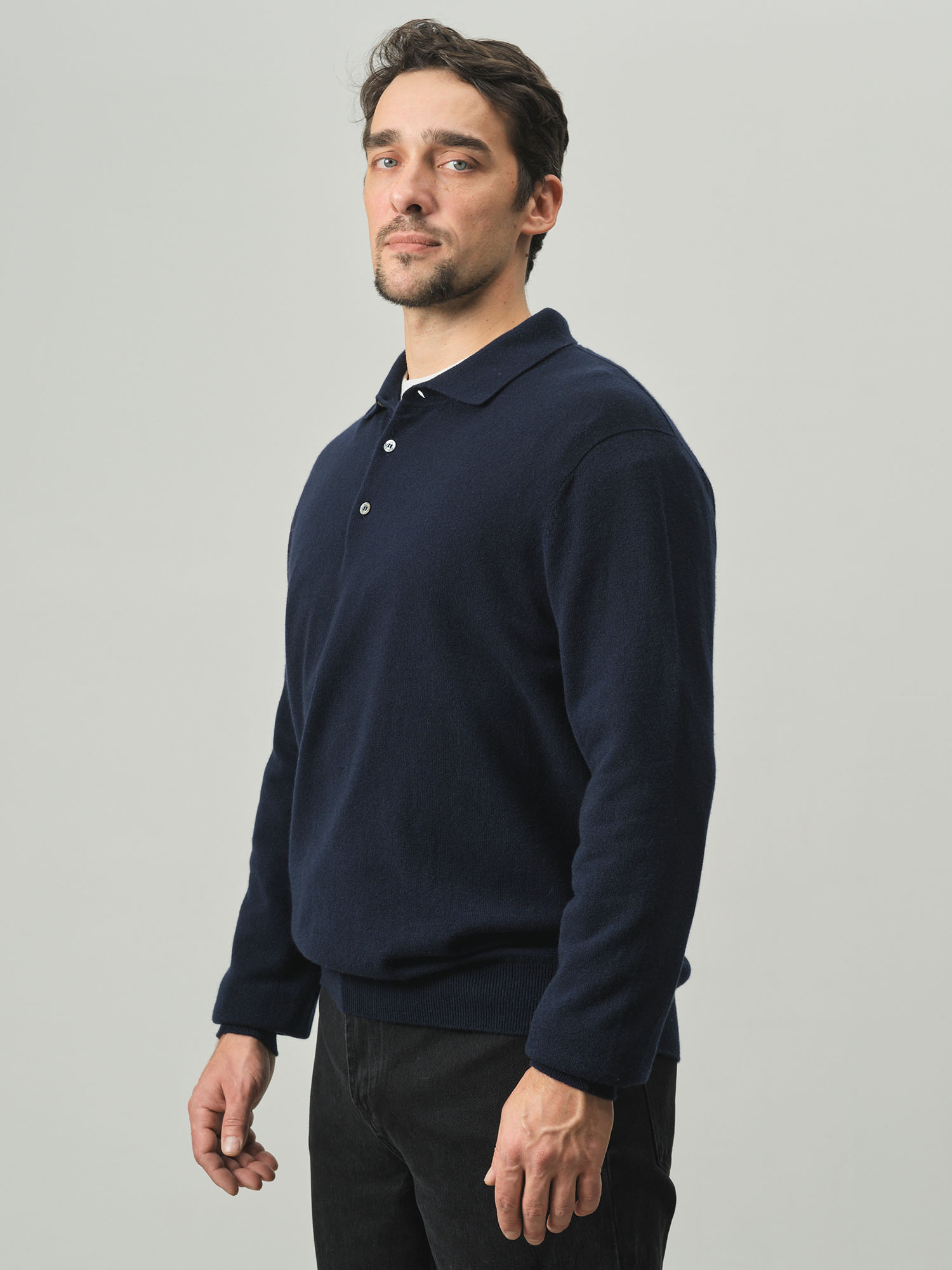 Джемпер-поло из кашемира мужской KM010140-E темно-синий