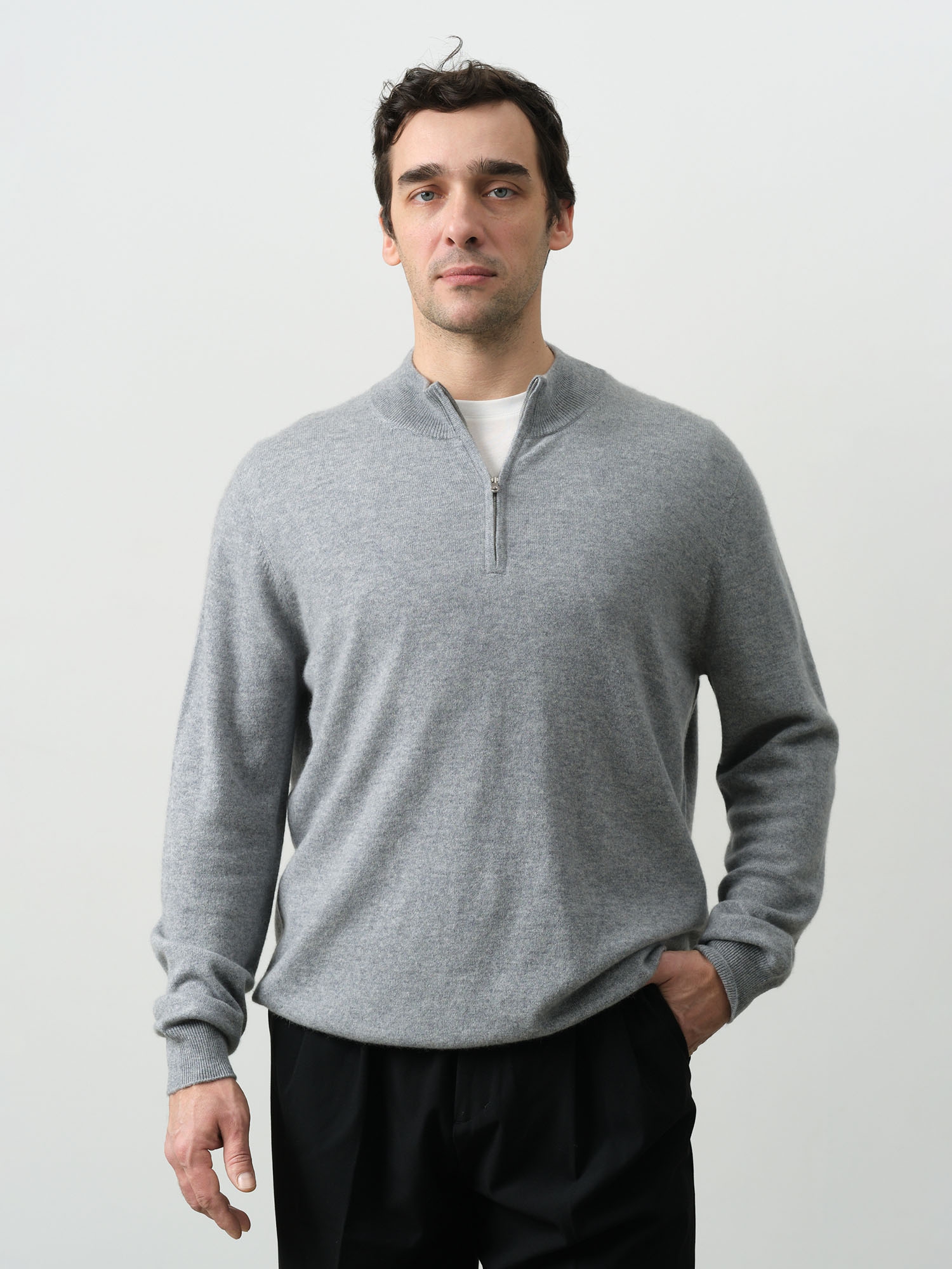 Мужской джемпер из кашемира с воротником на молнии — универсальная модель, сочетающая комфорт, функциональность и современный стиль. Отлично подходит для повседневной носки и деловых casual-образов.