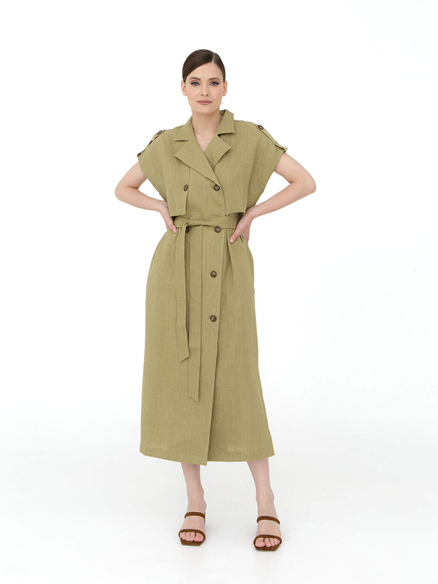 Приобретите это льняное платье прямо сейчас и откройте для себя непревзойденный комфорт натуральных материалов! Инвестируя в качественную одежду из льна, вы не только следуете модным тенденциям, но и делаете осознанный выбор в пользу долговечности и экологичности. Обновите свой гардероб этим универсальным платьем в светлом хаки, которое прослужит вам не один сезон и всегда будет выглядеть актуально.