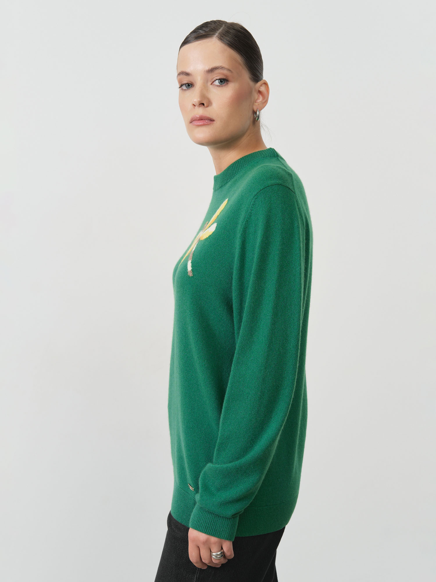 Насыщенный зелёный оттенок, подчёркивающий свежесть и элегантность образа.