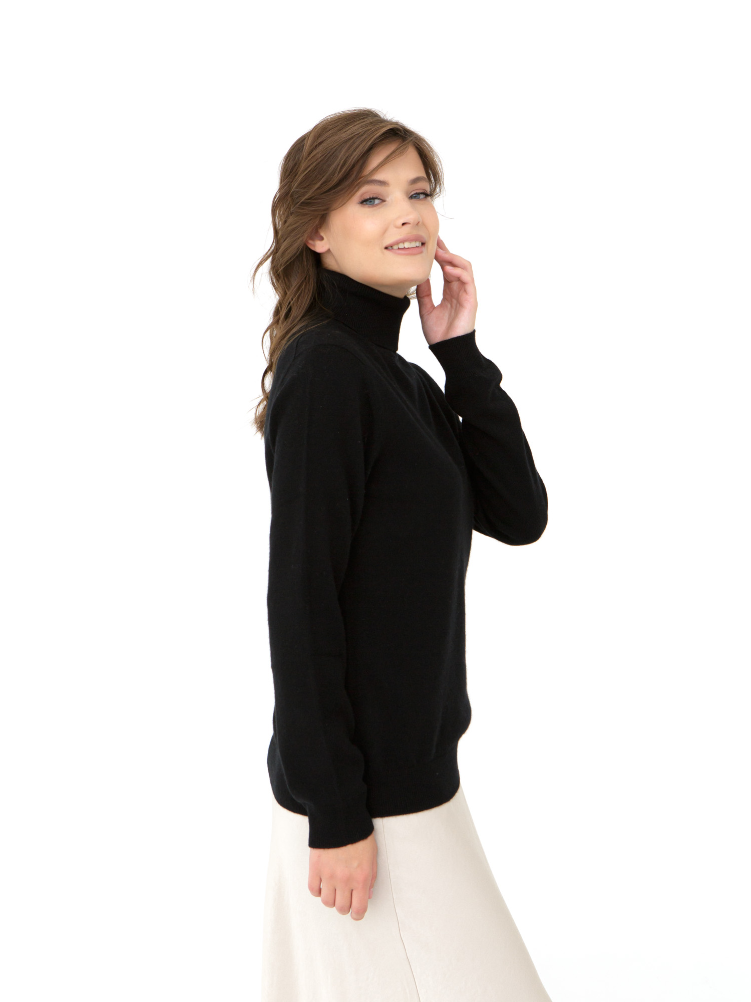 Черный цвет водолазки — это символ универсальности и стиля, который легко сочетается с различными элементами гардероба. Будь то деловой костюм, джинсы или юбка, эта водолазка станет основой вашего образа, добавляя ему строгость и элегантность.